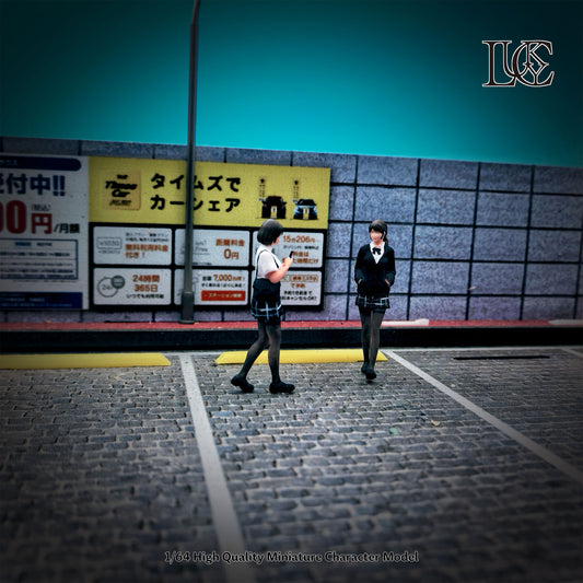 Lucky Studio 1/64 Scale Figurines Model High School Girls Duo Couple Collection Miniature Hand-painted
