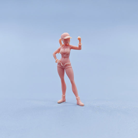 1/64 1/43 Figurines Scale Model Resin Girl Showing Off Muscles in Shorts Uncolored Miniatures Diorama Hand-painted D826