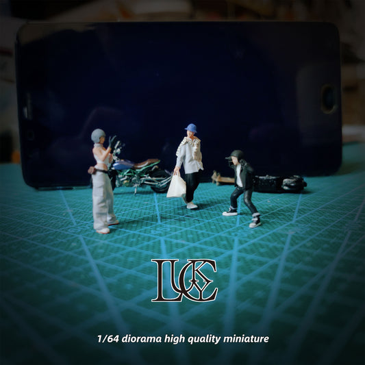 Lucky Studio 1/64 Scale Figurines Model Motorcycle Siblings Trio Collection Miniature Hand-painted