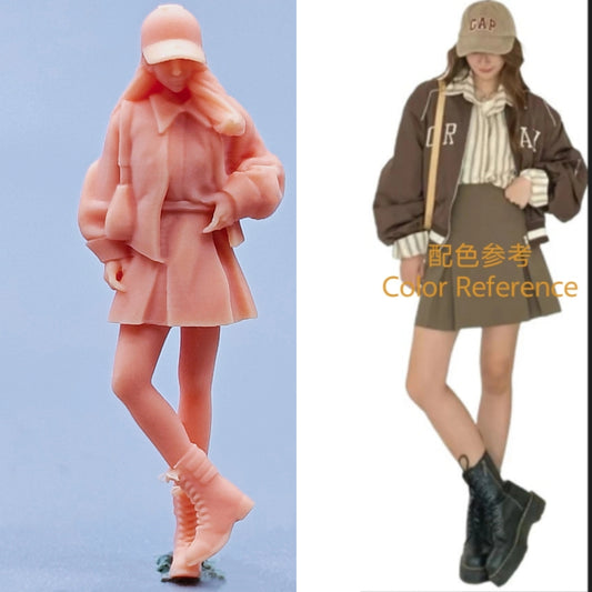1/64 1/43 Figurines Scale Model Resin Girl Wearing A Hat Long Hair and A Small Backpack Uncolored Miniatures Diorama Hand-painted W430