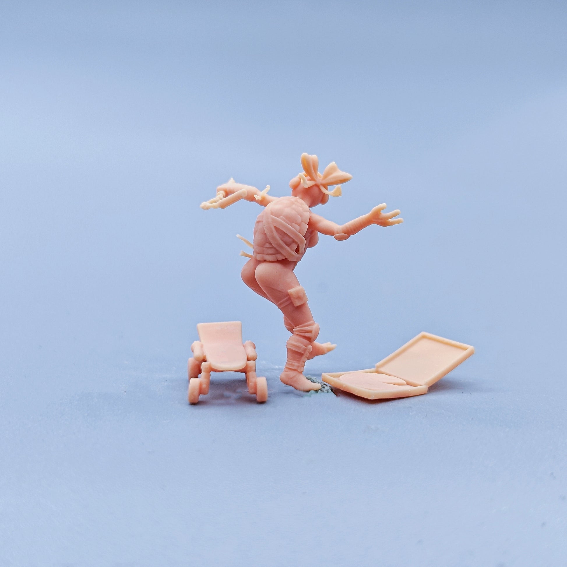 1/64 1/43 Figurines Scale Model Resin Ninja Skateboarding Pizza Woman Uncolored Miniatures Diorama Hand-painted C832