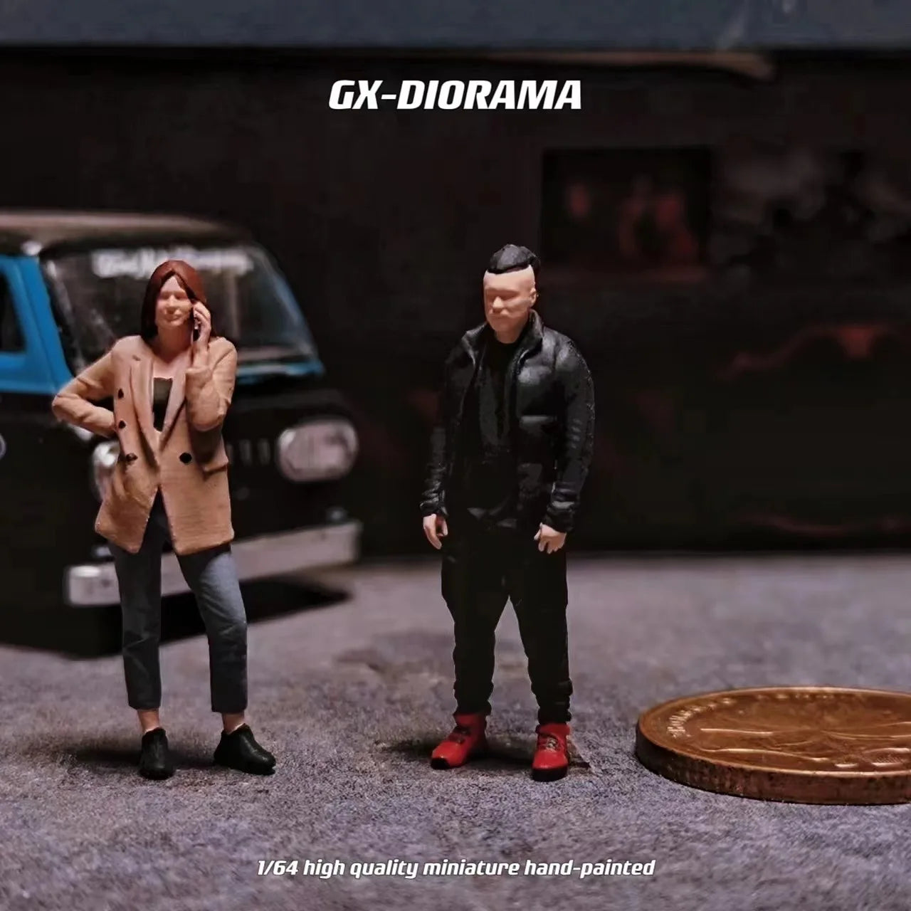 GX-DIORAMA Diorama 1/64 Scale Figurines Model Waiting for You To Call Realistic Characters Collection Miniature Hand-painted