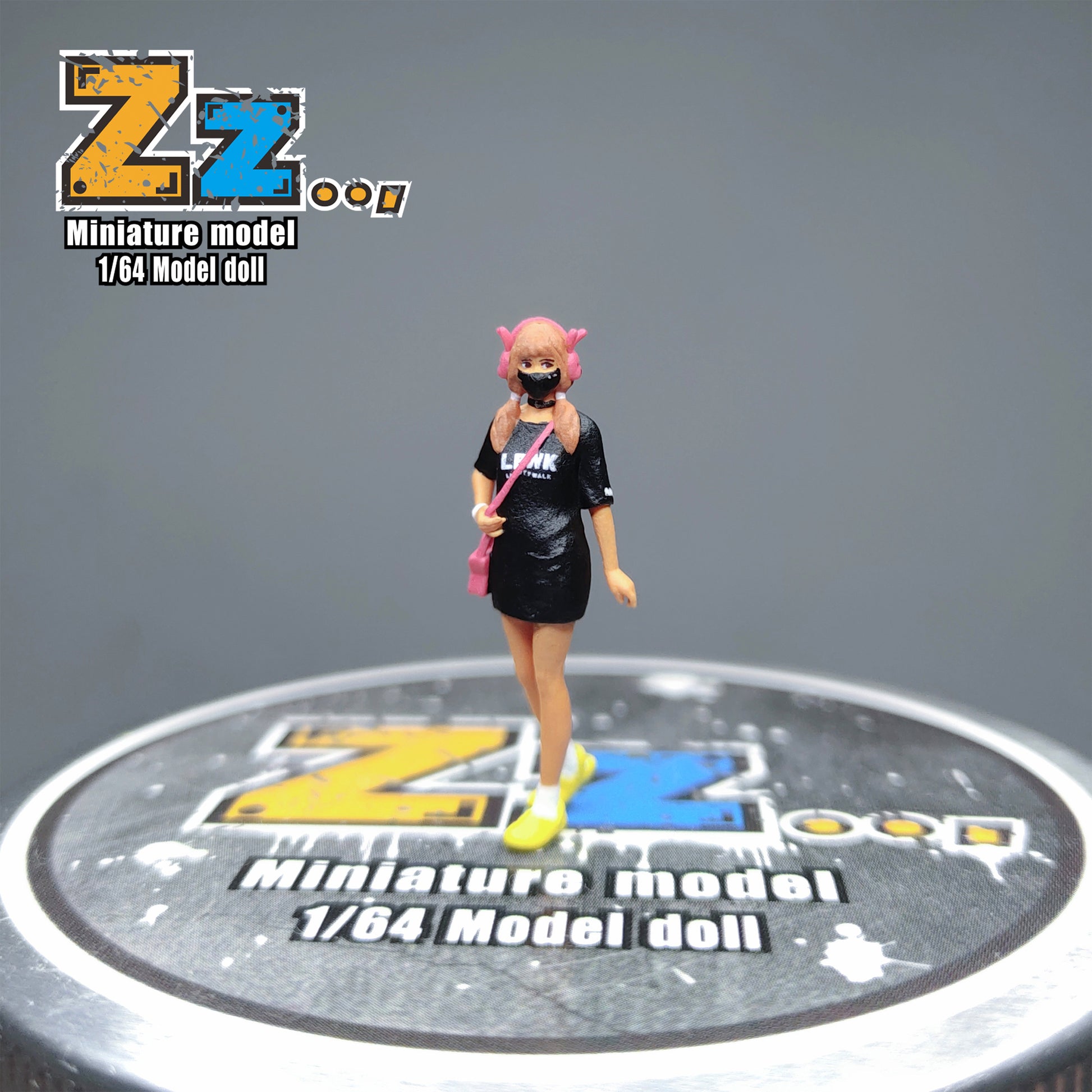 Zz Studio 1/64 Figure Model Black Mask Shoulder Bag Female Collection Miniature Hand-painted